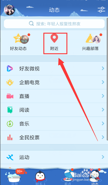 来到动态页面,点击上面特四周的,如图所示