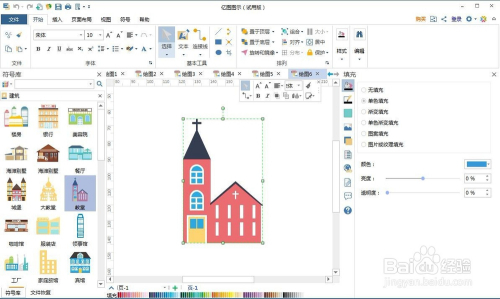 在电脑设计时,若是我们需要插入一个教堂图,可以经由过程亿图图示自带的建筑图库来添加,这样就不消担忧我们在网上下载的教堂上有字或者有布景了,其操作方式如下。