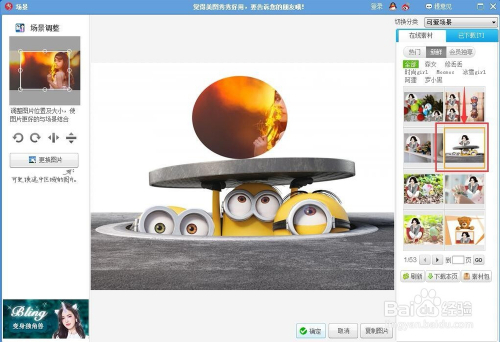 在场景调整对话框中,调整好图片的位置及大小,调整完毕按确定;