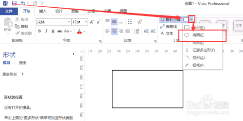 然后点击后面的下拉菜单,点击椭圆东西,在绘制区域拖动鼠标即可绘制椭圆,按住shift键和鼠标左键,进行拖动,即可绘制尺度圆。如图所示。