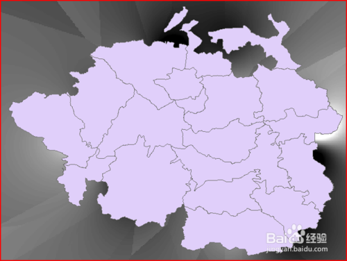操纵EXCEL计较得出的残差,建造当作点文件,采用反距离权重差值阐发后获得残差图层,然后裁剪出规模,如下图所示: