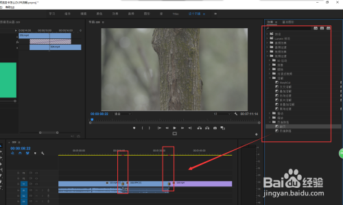 打开结果窗口,在PR自带的浩繁结果中,随机选几个添加到每个视频之间的交代出,为其添加过渡结果。
