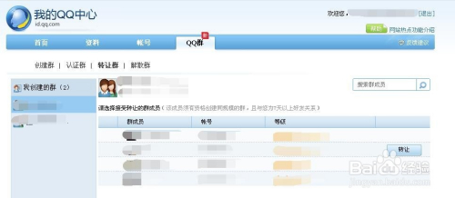 接着点击导航条的“QQ群”-“让渡群”;