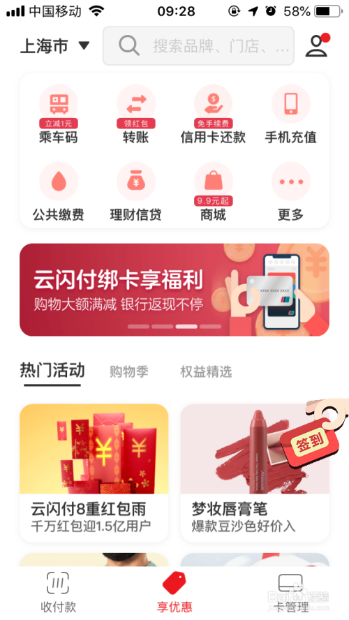 首先打开云闪付APP,在首页可以看到热点活动,云闪付8重红包雨活动
