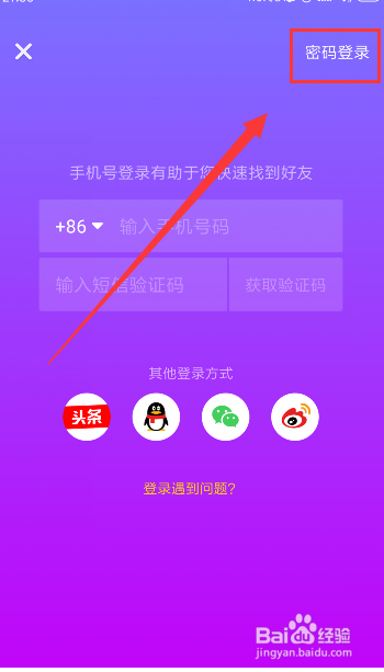 你也可以点击登录页面的,右上角的密码登录,进入登录页面,输入抖音账号和密码,如图所示