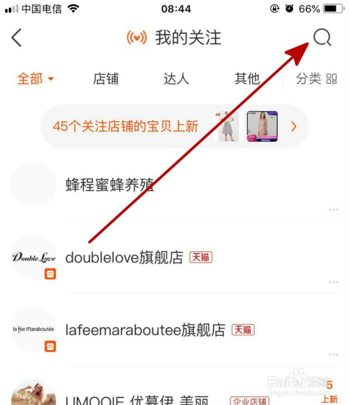 打开存眷店肆后,我们会看到本身存眷的多个店肆,我存眷的就有两百多个是以若是去本家儿界面收搜是很麻烦的,在这里我们可以点击右上方的搜刮图标,进行搜刮,如下图