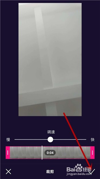 下方的视频播放进度便是裁剪长度,点击【✔】完当作裁剪。