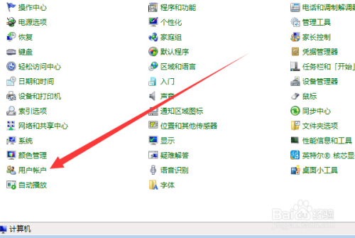 我们进入节制面板之后,找到下方位置的用户账户,点击进入用户账户。