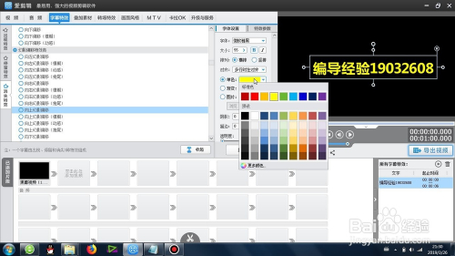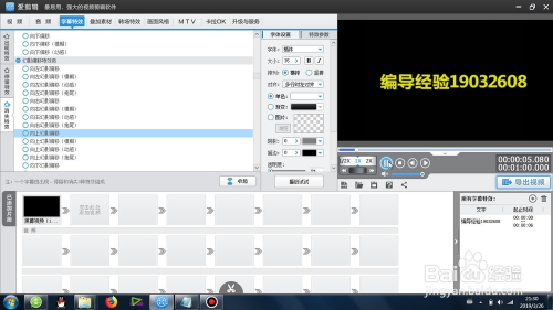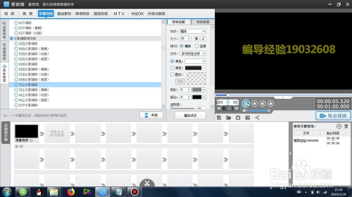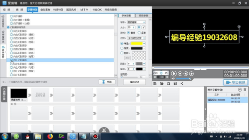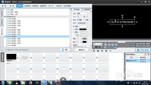 确定之后,就将文字导入了视频预览区域,我们可以进行文字的根基属性的点窜