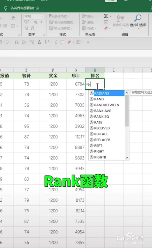 第二步:在这一列的后一个单位格输入“Rank”函数,然后第一个数据为本身想要比力的数据。