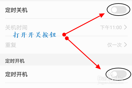 我们需要别离将“按时关机”和“按时开机”这两个开关全数打开,当然也可以按照本身的现实需要选择开启某一个;