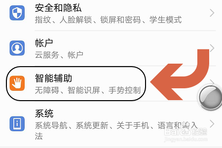在以上的设置页面里,我们需要找到“智能辅助”这一项,当然分歧型号的荣耀手机对应的选项可能会有区别;