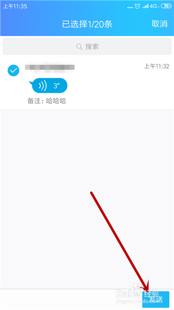 这样就会把语音文件转发给老友,在聊天界面中可看到。