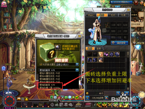 若是游戏玩家用来搬砖。那么需要选择负重上限。若是是下本,那么选择回避率。