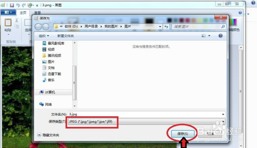 呈现对话框,保留到适才的文件夹,定名图片名称,保留类型为“JPEG”,再点击【保留】。