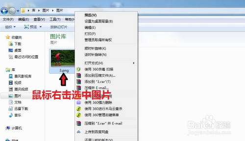 电脑打开图片地点的文件夹,鼠标右键选择图片,呈现对话框。