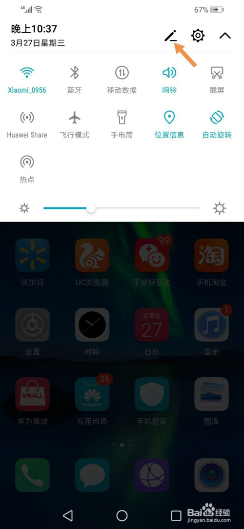 首先解锁手机屏幕,接着从手机顶部标的目的下滑动。
