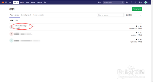 添加到项目后的人员进入GitLab后,就可以看到项目了,如下图所示: