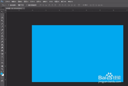 第一步:打开PS软件,新建一个蓝色画布,或者打开需要添加白边文字的图片。