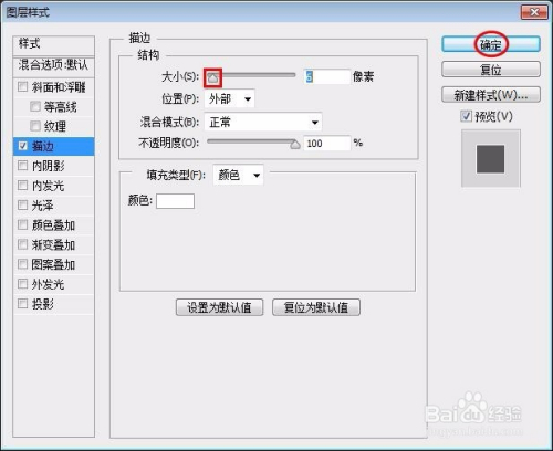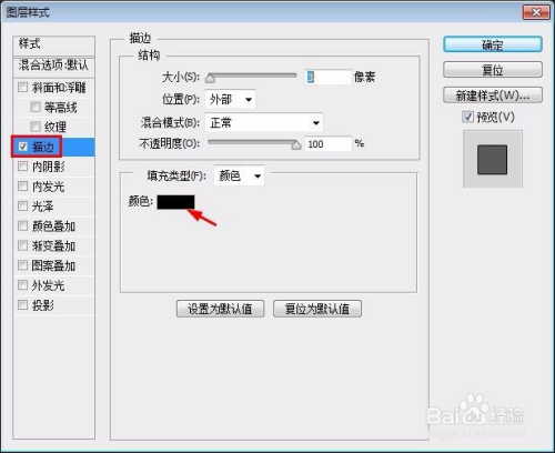 第六步:在左侧样式中勾选上“描边”,单击颜色图标。