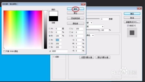 第七步:在拾色器中选择白色,单击“确定”按钮。