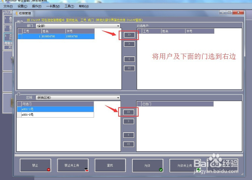 1、将左边的用户和门选到右边,点击【许可并上传】,期待上传当作功,点击确定即可;