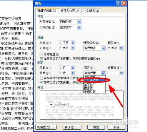 鄙人拉菜单选择“1.5倍行距”单击