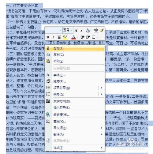 利用拖曳或者借助“Shift”键选中全文
