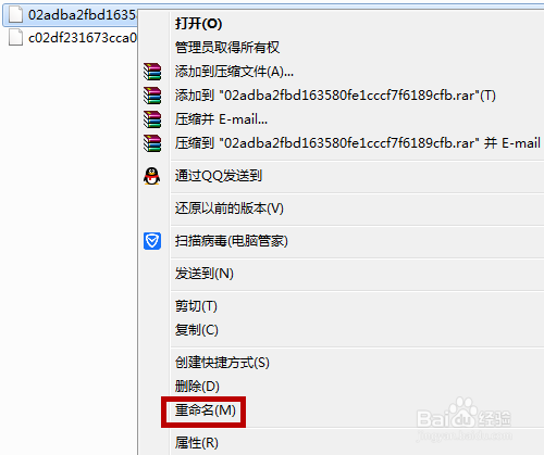 我们找到这个文件,要找到内存最大的文件,然后点击【重定名】。