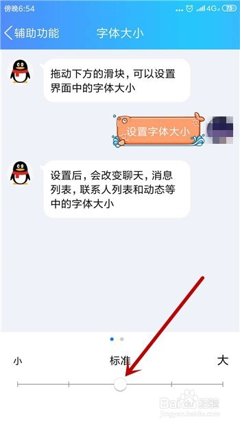 在调整字体大小的时辰只需要拖动底部的进度条来调整,好比调到最大拖动到右边。