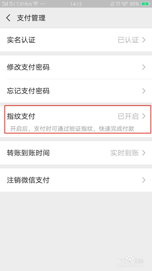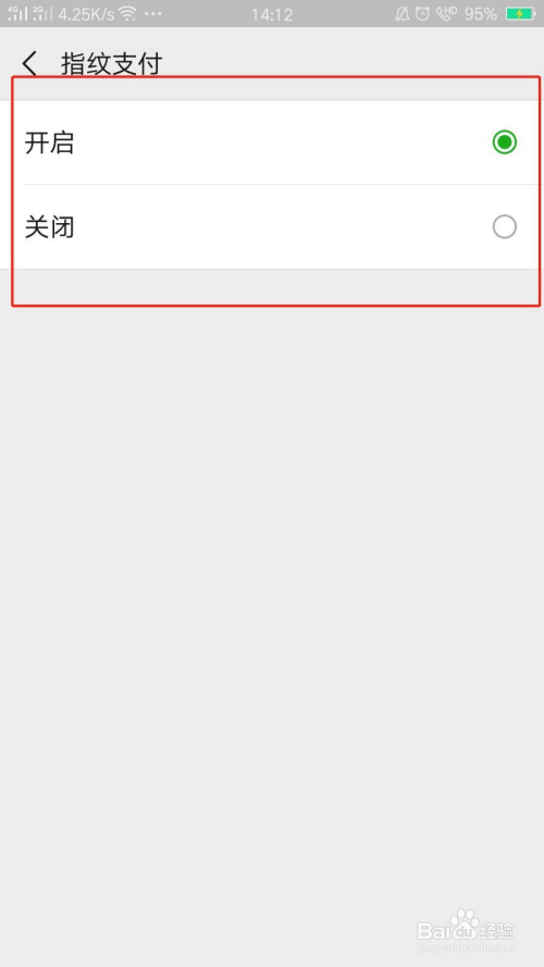 第六步:点击开启 指纹支付 ,同样也可以用这种方式进行封闭指纹支付