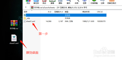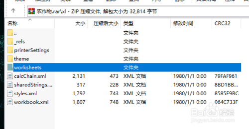 第二步 打开压缩文件,进入worksheets,把需要解锁的文件拖到外边(我是放到了桌面上)