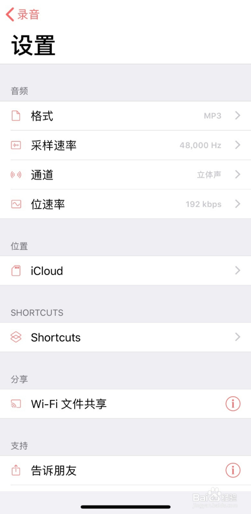 右侧有灰色“iCloud”的灌音暗示该灌音存在iCloud;无标识的灌音暗示该灌音存在当地;