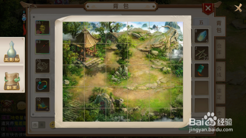 我们打开盒子后,会获得一份显影粉等工具,我们打开利用,先完当作拼图,此次是卧龙坡的地图,一般是卧龙坡、桃柳林、揽仙镇外等地图。我们拼完地图利用显影粉,再翻面利用,之后我们会在地图上看到一个绿点,这个就是山公的位置。