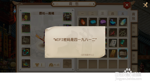 之后我们点击茅山道士,茅山道士给了一把钥匙,我们点击利用钥匙,获得了一张纸条,上面写着wifi密码。