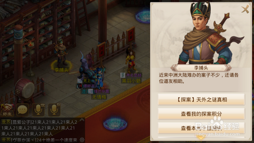 首先每周一10:00起头,我们就可以去天墉城找李捕头,进行领取使命,本周为天外之谜。