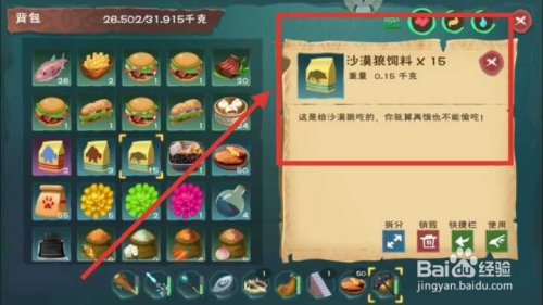 第四步,捕获戈壁狼除了需要筹办饲料(需要13包摆布,保险筹办15包),我们还要筹办打晕戈壁狼的兵器【木棒】,捕获戈壁狼用的【捕获器】,具体如下图