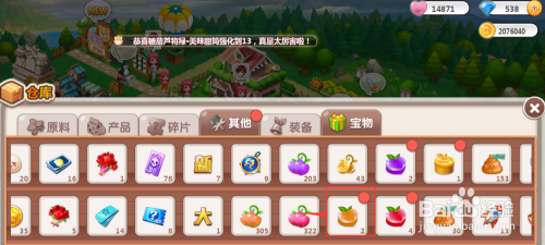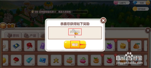 利用当作功,点击确定,我们就可以获取黄宝盒里的扩地材料。