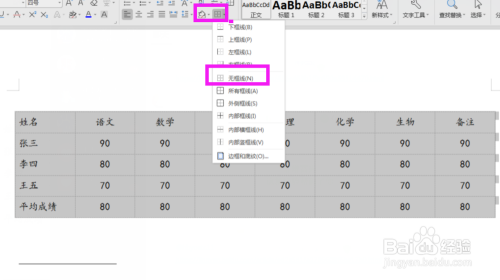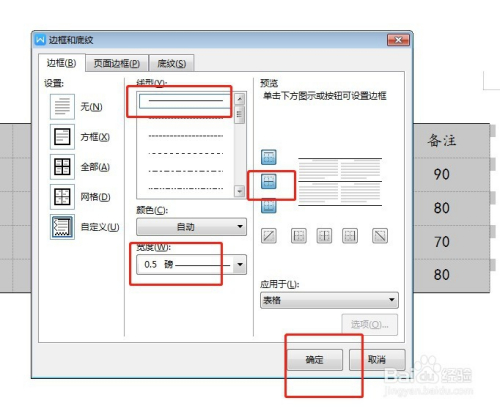 底线的设置与顶线的一样,设置中心表格线,宽度选0.5磅