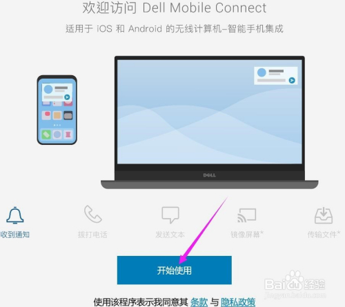 打开我们电脑的Dell Mobile connect,如图。点击【起头】。