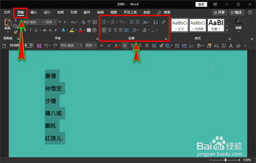 接着在软件顶部菜单栏选择“起头”菜单,在其下拉菜单中找到并选择“段落”选项组。