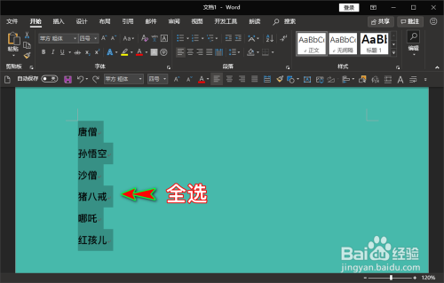 录入好姓名内容之后,我们全数选中这些需要调整的姓名内容。