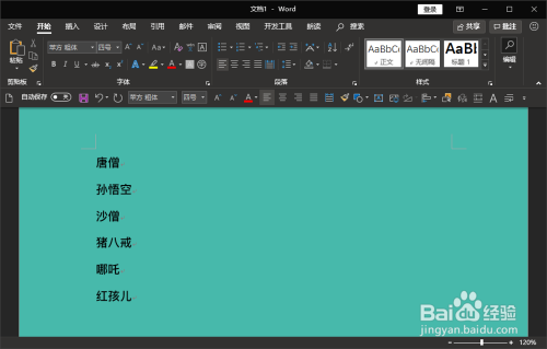 打开电脑,直接进入到word软件中,在文档里录入好需要调整的姓名内容。