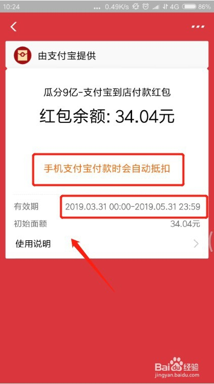 再点进去,会看到这个红包是有有用期的,6月1日前要用完。