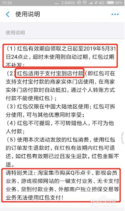 再进入到利用申明中,会对这个红包有更具体的利用申明。