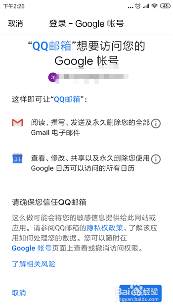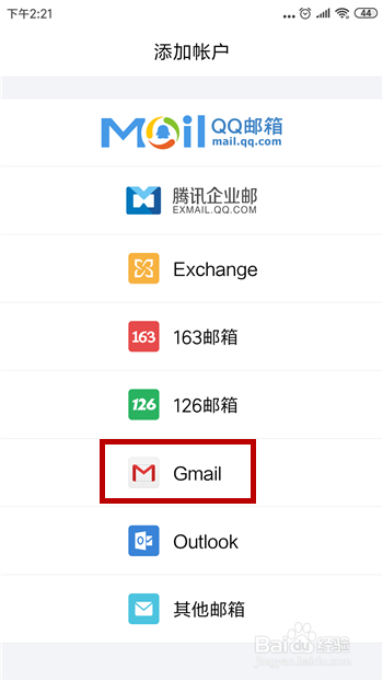 进入QQ邮箱后会提醒我们添加账户,这里需要选择【Gmail】。