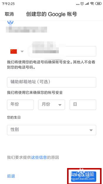 验证完当作后需要输入我们的一些信息包管邮箱的平安,填好后点击【下一步】。