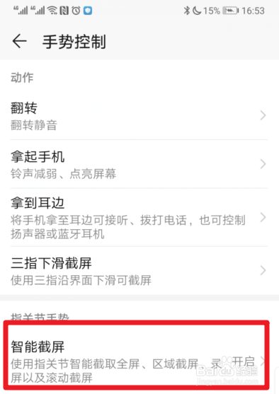进入手势后,我们选择智能截屏的选项进入。