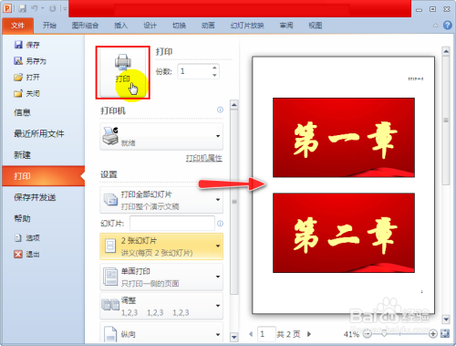 然后我们在扩展项“课本”下地契击“2张幻灯片”子项,返回到预览界面后,会发现被打印的幻灯片由1张酿成2张了。最后再点击“打印”按钮,这样2张幻灯片就被打印到统一张纸上。如图所示: