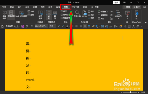 找到“拆分”后,我们点击该按钮,点击后文档就被拆分为两份了。